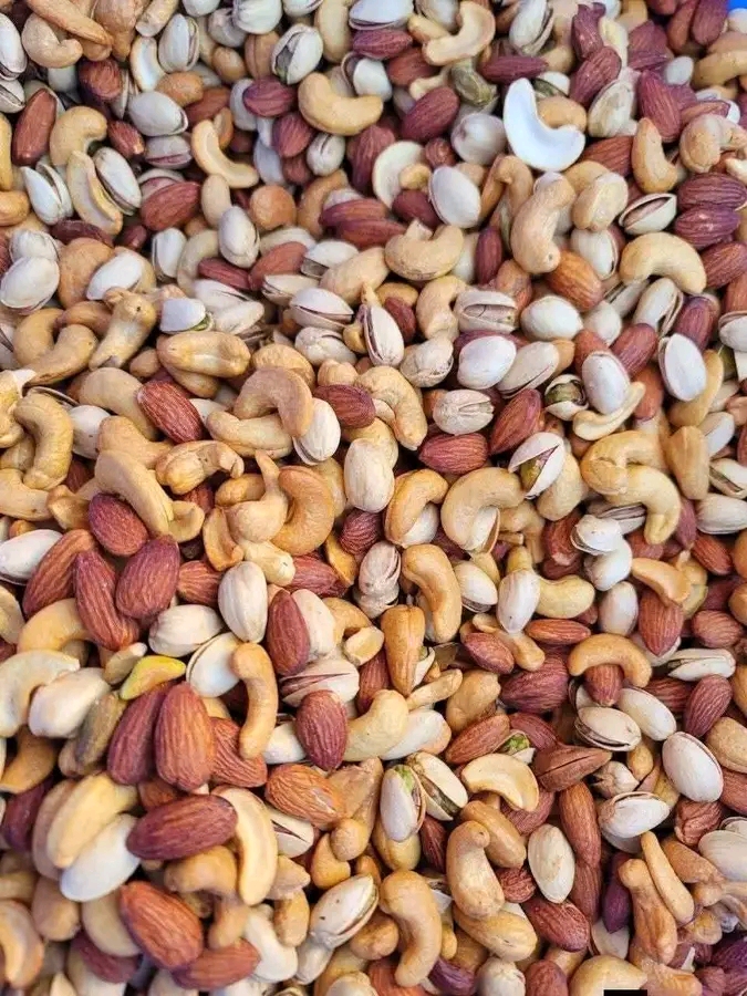 المكونات الأساسية: فستق حلبي (جامبو)، كاجو محمص، لوز أمريكي، وبندق تركي مقشر.