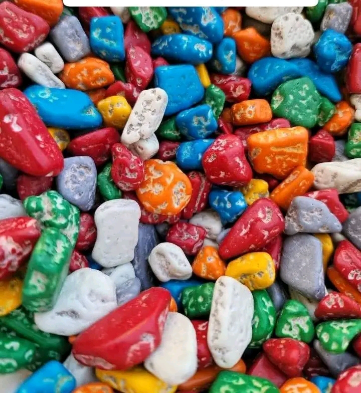 الشكل: قطع صغيرة غير منتظمة تشبه الأحجار الطبيعية أو "الزلط" الملون، وتأتي بألوان واقعية جداً (رمادي، بني، أحمر طوبي، وأخضر زيتي).
